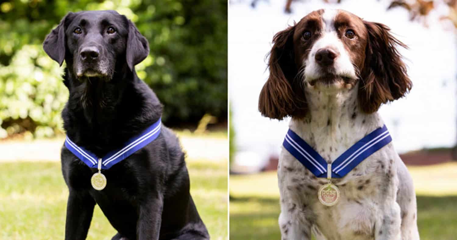 Metro reports that English spaniel Alfie and Labrador AJ are being recognised for their ‘exemplary careers’, which involved helping to locate arms, ammunition and explosives. The military dogs served in Number 4 RAF Police (Typhoon) Squadron for six years, and have now received the PDSA Order of Merit for their contributions to society. The pair, who operated in dangerous environments for most of their careers, have now retired. Alfie and AJ were described as being the best in their field for the number of search hours, searches and operational finds.