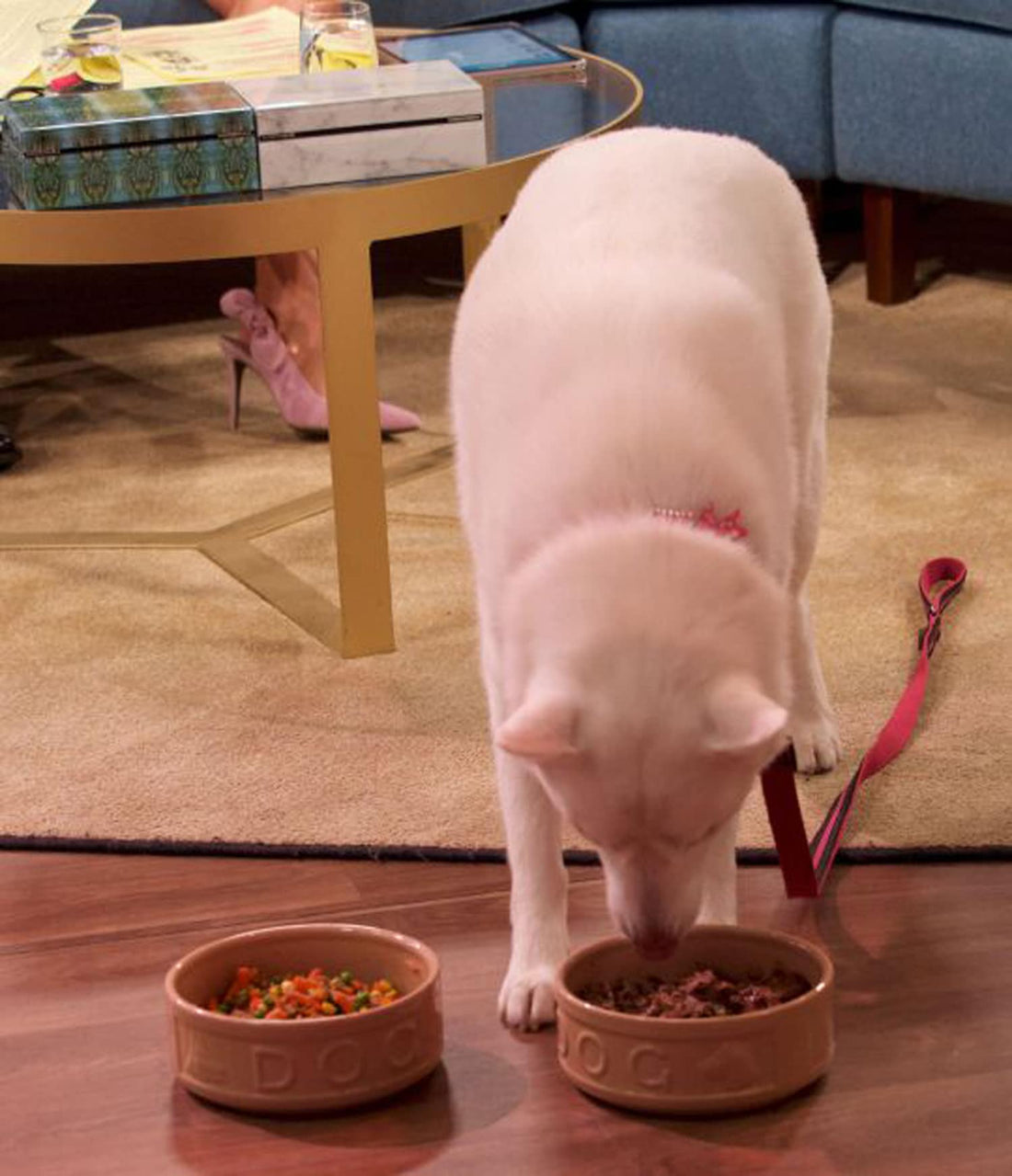A woman who was raising her dog as a vegetarian was left speechless on live TV when her pet chose meat over vegetables.