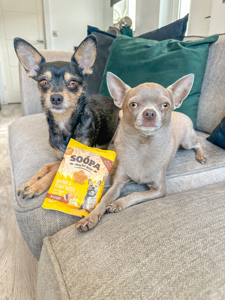 Soopa’s Banana & Peanut Butter Healthy Bites are the perfect feel-good training treat — small, soft, and packed with natural goodness. Grain-free, hypoallergenic, and made with real human-grade ingredients, these bites support your dog’s wellbeing with every chew.