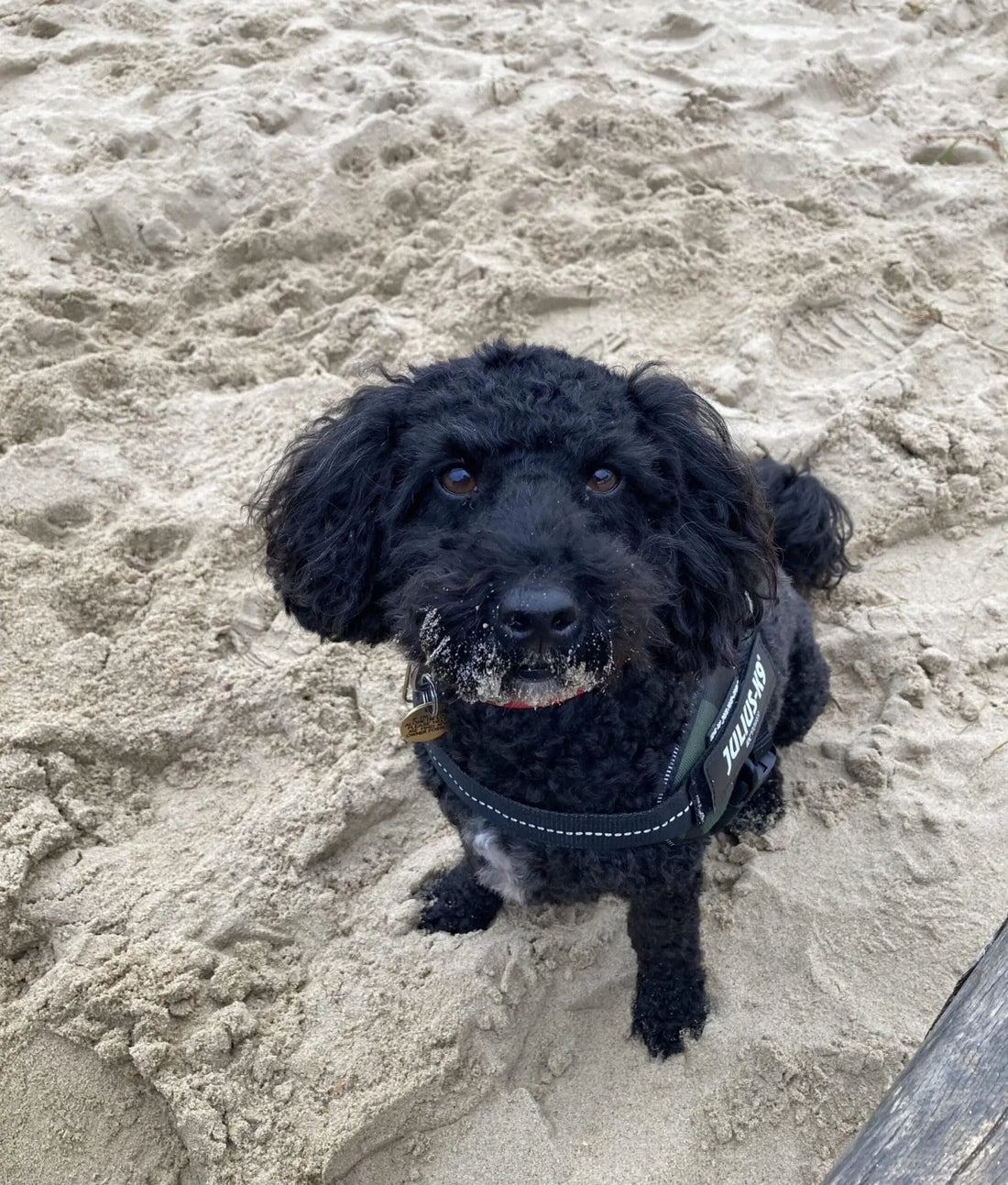 Dyma Louis, y Jacapŵ 6 mlynedd ar y traeth yn ei dref enedigol, Bournemouth. Mae'n gydymaith hyfryd i Deborah ac yn ei chadw'n heini gyda digon o ymarfer corff ar eu teithiau cerdded dyddiol. Y traeth yw ei hoff le i chwarae a cherdded. Da iawn Louis!