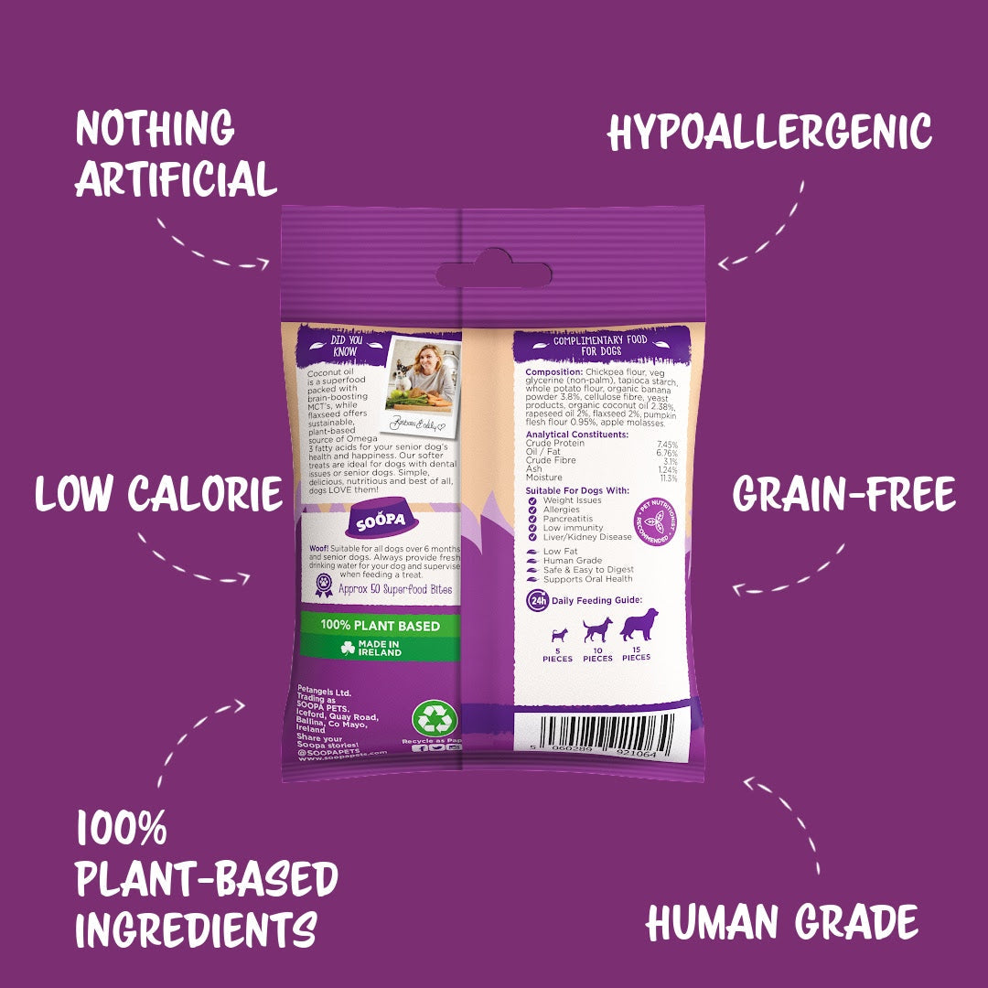 Dyna pam rydyn ni wedi creu’r danteithion blasus yma ar gyfer pob math o gŵn bach hŷn sydd angen rhywfaint o TLC ychwanegol yn eu bywyd – dim ots pa mor fawr neu fach ydyn nhw!