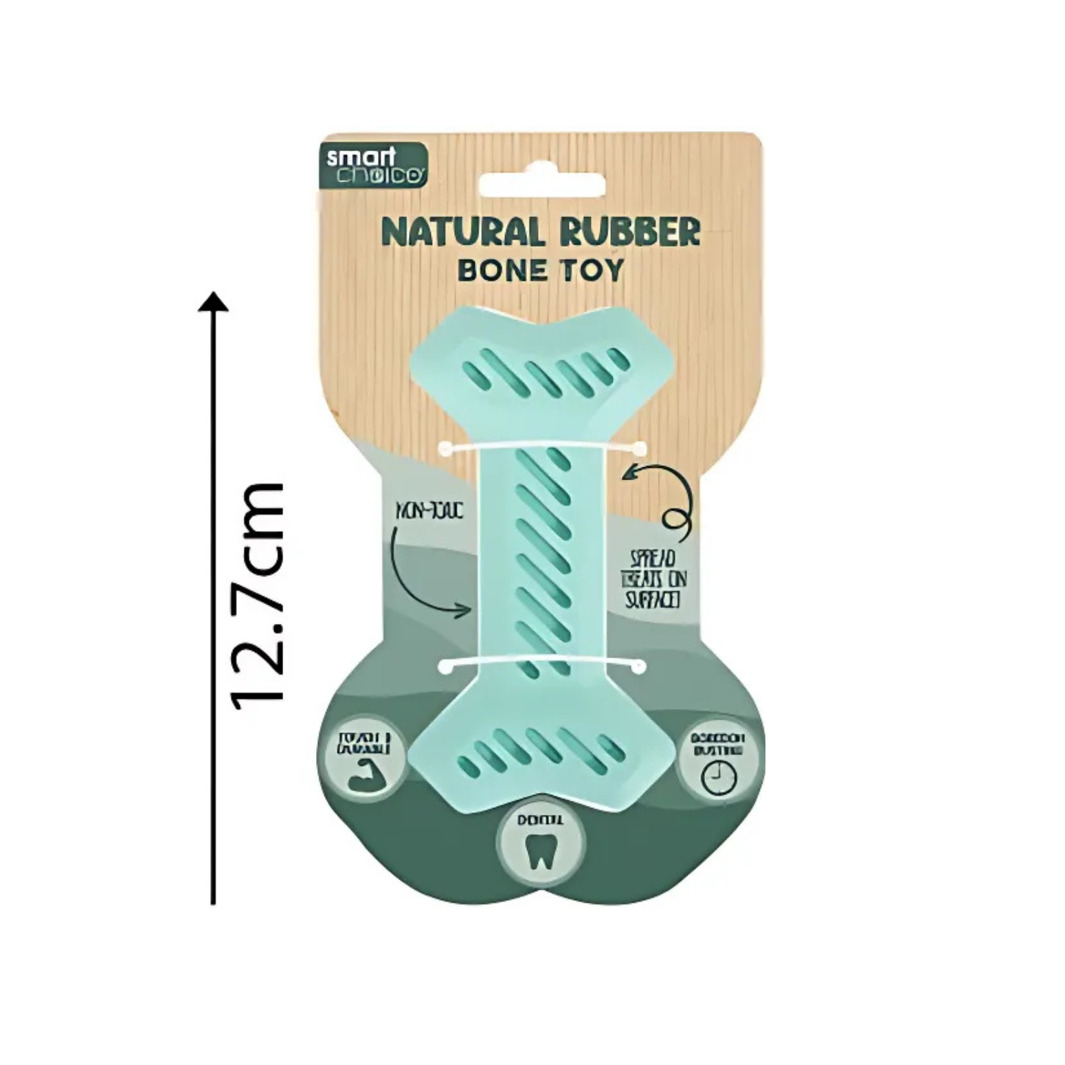 Keep your dog entertained with the Smart Choice Natural Rubber Bone Toy, designed for durability and dental health.